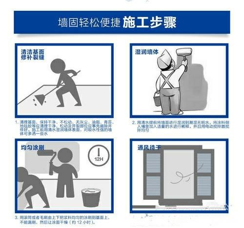 墻固施工流程:檢查維修墻地面,解決開裂空鼓等問題。清理干凈墻面,調(diào)制好墻固涂料,由高到底進行滾涂施工,眼觀檢查,覆蓋率99%即可。干燥后方可進行后續(xù)施工,墻固施工完成未干燥時不可進行灰塵作業(yè)。