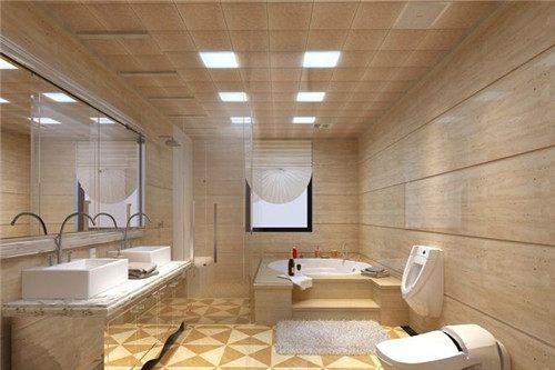 4.由于衛(wèi)生間的濕氣比較重,吊頂常常被淋浴的蒸汽包圍,所以衛(wèi)生間漏水時(shí),吊頂?shù)膲毫σ埠艽蟆_@時(shí)可以把吊頂做成防水性好的PVC扣板,把它安裝在龍骨上遮蔽管道。